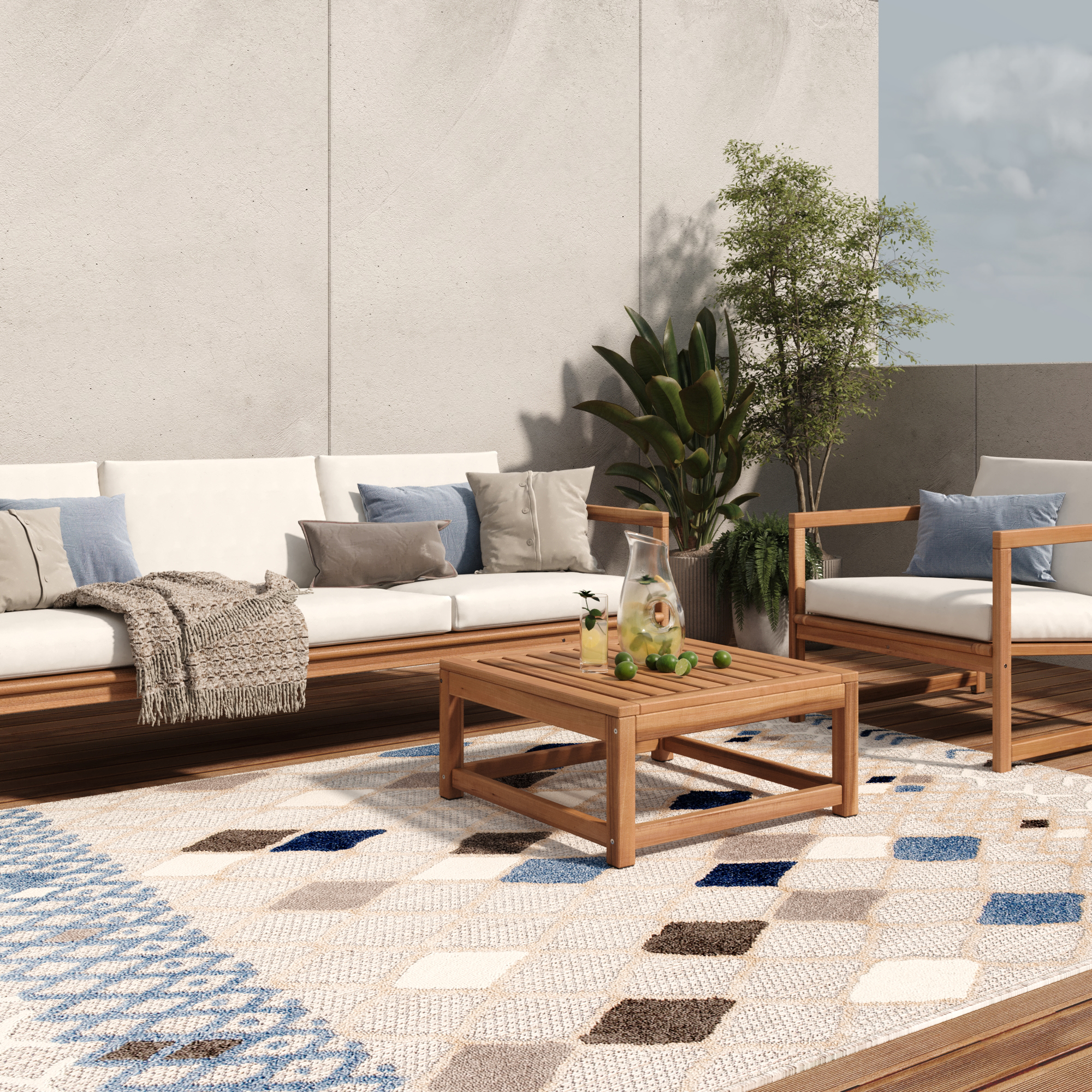 Ce este special la covoarele din colecția Patio? În primul rând, acestea sunt proiectate pentru a fi utilizate atât în interior, cât și pe terasă sau balcon. Grămadă lor mică, cu două niveluri face ca acestea să fie nu doar estetice, ci și ușor de întreținut, ceea ce cu siguranță va fi apreciat de proprietarii de animale de companie Indiferent de condițiile meteorologice, covoarele Patio își păstrează calitățile, astfel încât să vă puteți bucura de ele indiferent de anotimp. În plus, datorită rezistenței la murdărie, nici măcar petele nu vor putea să piardă farmecul acestor covoare deosebite.