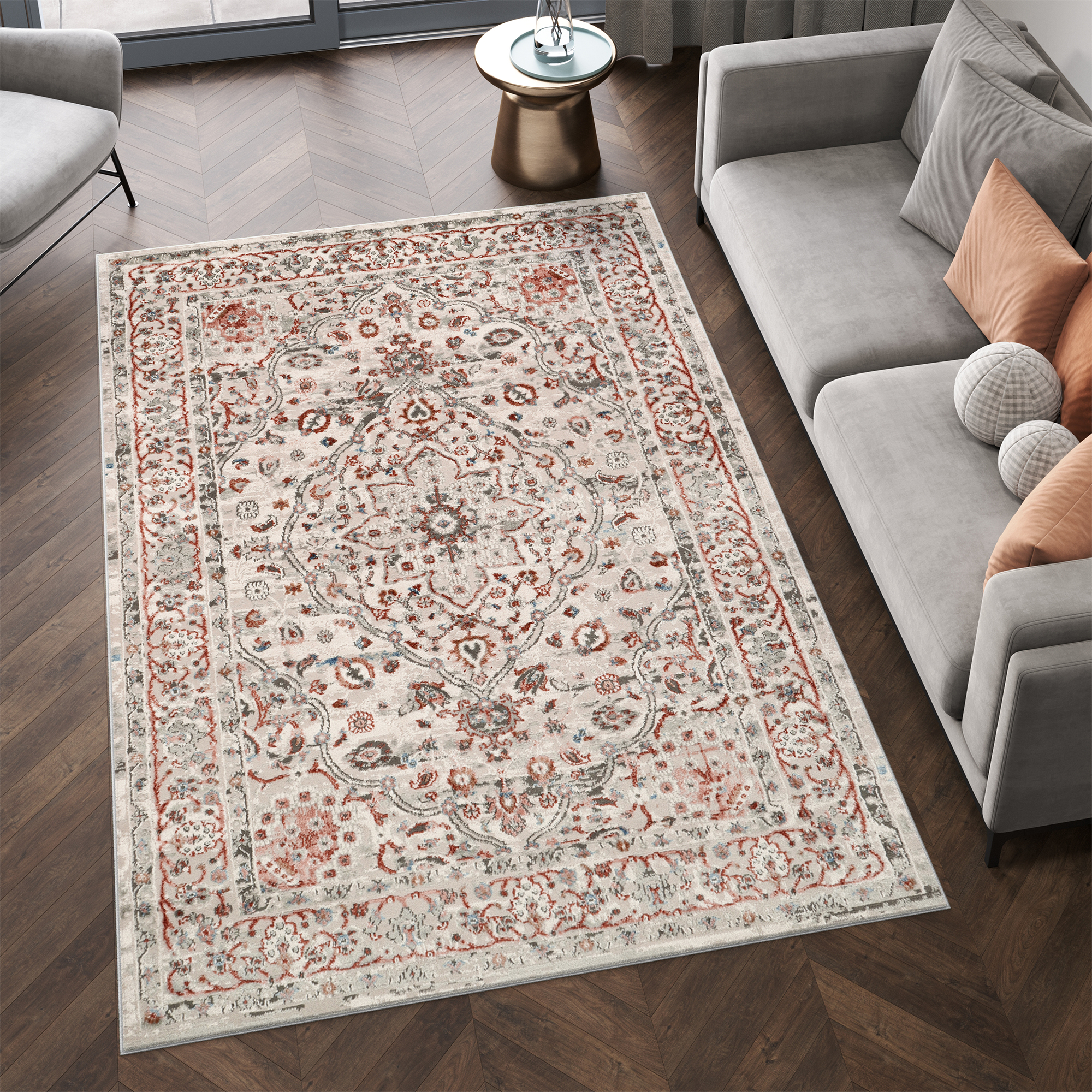 Culorile dominante din colecția Retro sunt cupru, gri și albastru. Aceste nuanțe conferă covoarelor caracter și eleganță, rămânând în același timp versatile și ușor de asortat cu diferite culori ale pereților și mobilierului.